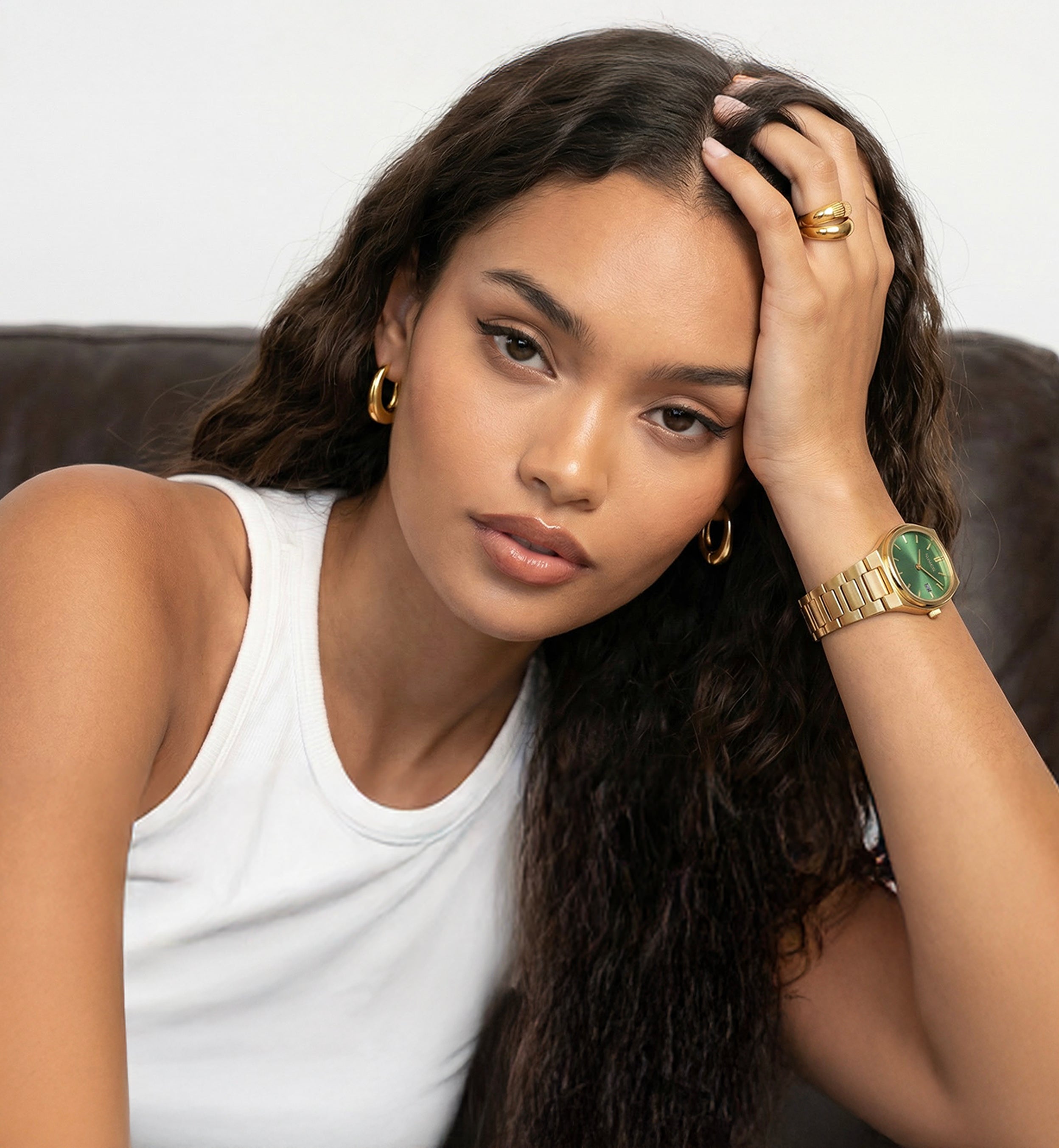 Love the watch and both sets of earrings that I bought. I was ready for a nicer watch that was not a smart watch and the gold and emerald green is perfect!