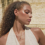 Inspired by the Celtic goddess of love, the Aine heart earrings lead you into a gentle love affair. Featuring a glistening heart silhouette with a bow stud, layer them with ocean motifs or the matching bracelet and necklace for a complete feminine look.