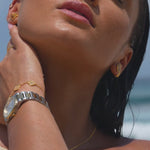 Made in 925 sterling silver to ensure its longevity, even across generations. Sterling silver is gentle on sensitive skin as it comprises 92.5% pure silver. We add a luxurious touch by finishing our jewelry with 18k gold plating, ensuring each piece retains its shine.