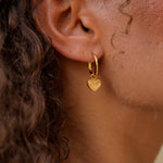 Fall in love with the Amore earrings, literally. A pair of dainty hoops with a dangling white quartz heart pendant, let them hug the ear comfortably for a subtle feminine look. Pair with other earrings or the Amore ring for a complete romantic look.