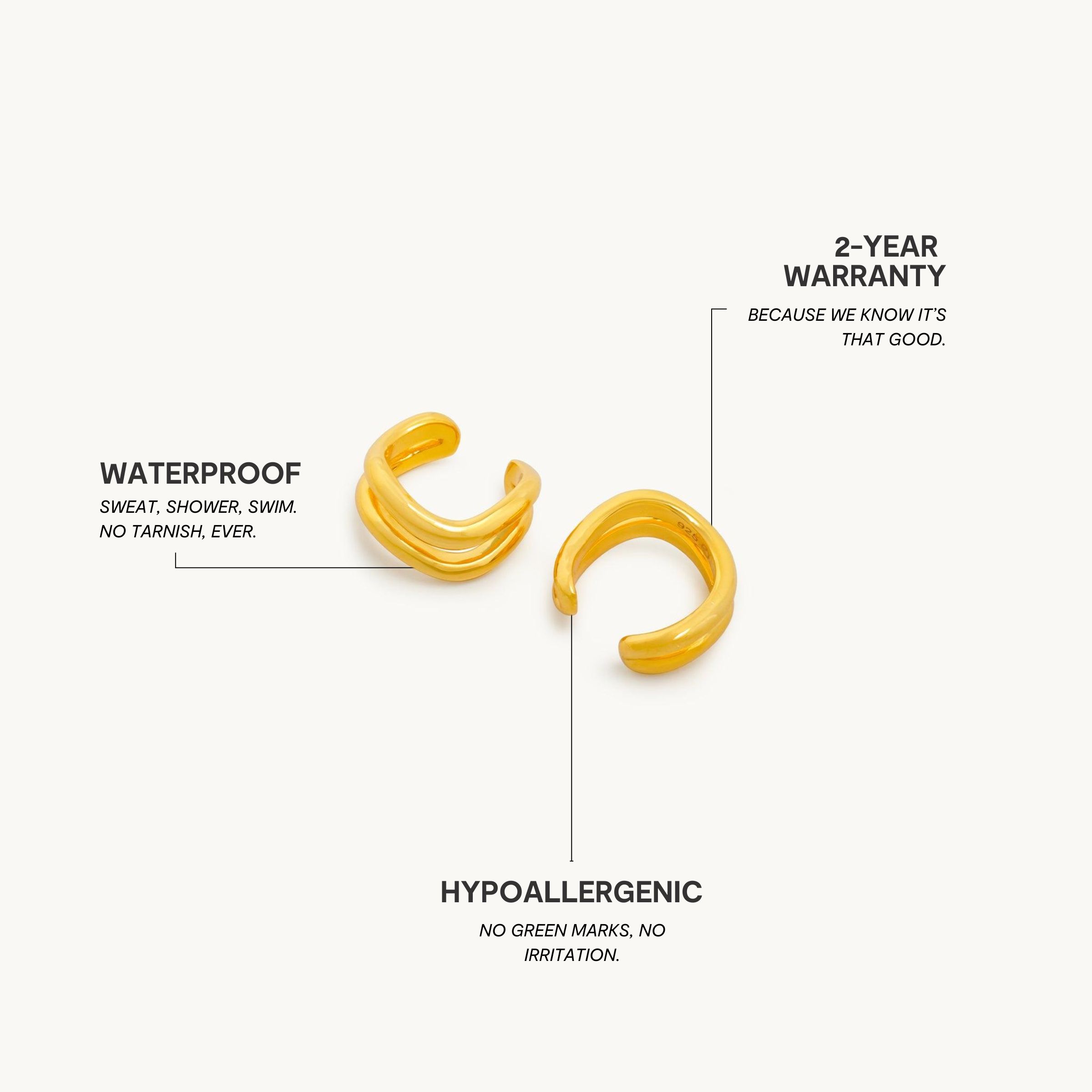 Fluid elegance, and timeless design, these minimal yet sculpted ear cuffs embody effortless grace. Ideal for any occasion, wear them solo for a touch of refined elegance and stack them with others to create your own signature, ocean-inspired style.