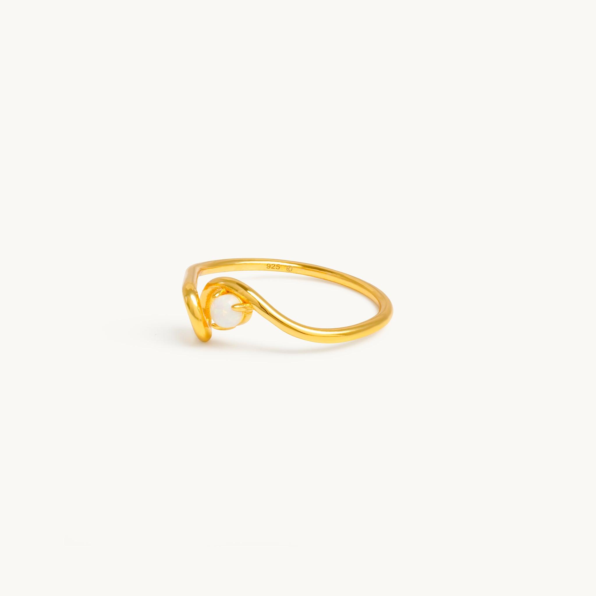 Flowing elegance, timeless charm. A wave-inspired ring set with a delicate opal stone, perfect for layering or wearing solo. Wear Elise as your go-to minimalist yet luxe minimal ring, or layer with the Elise necklace for a romantic look.