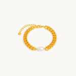 Meet Stella. Featuring a classic, bold chain with an unexpected feminine touch, this piece emulates a mermaid’s braid adorned with a pearl stone. Wear the sea’s secrets on your wrist, and stack it with other minimal bracelets to create your own signature style.