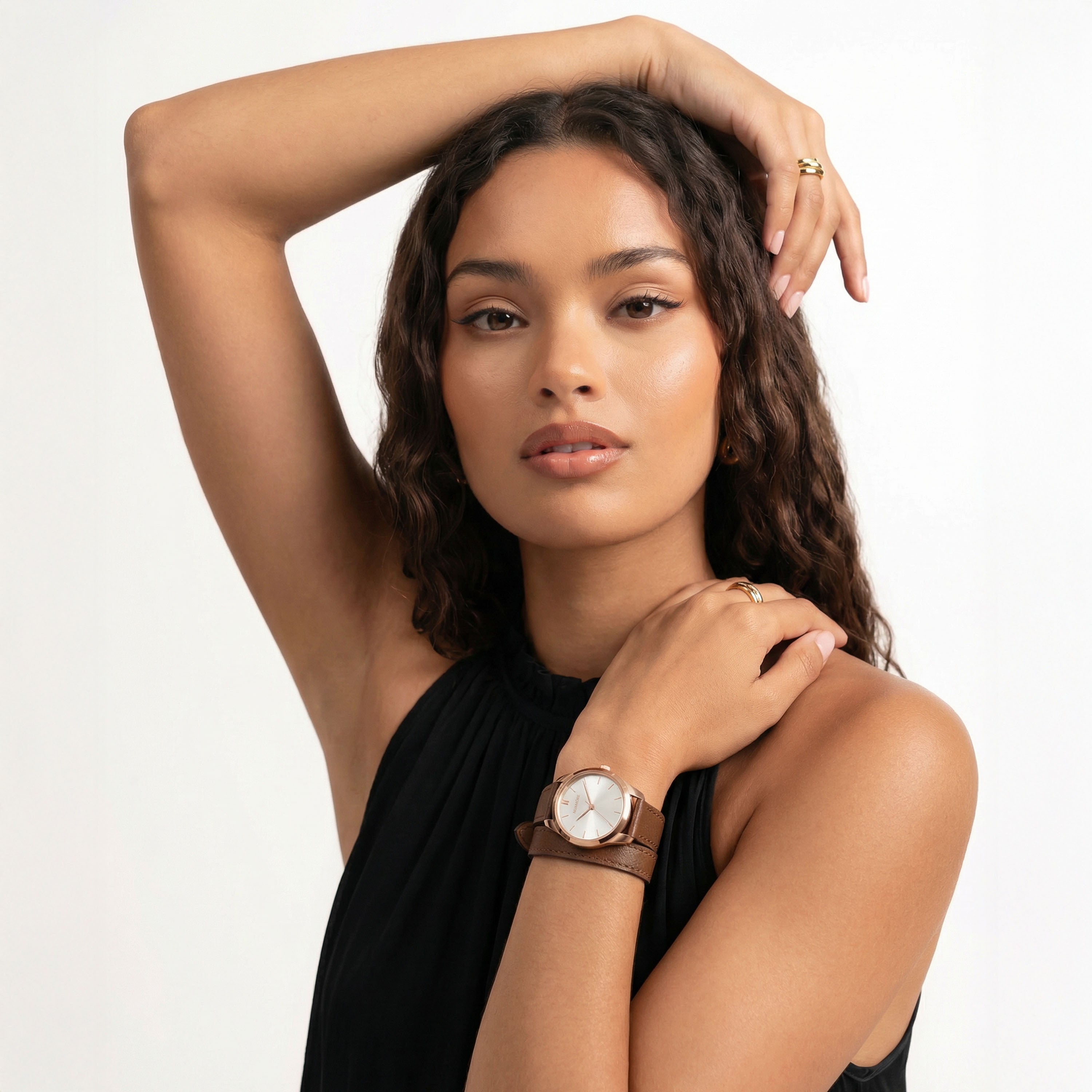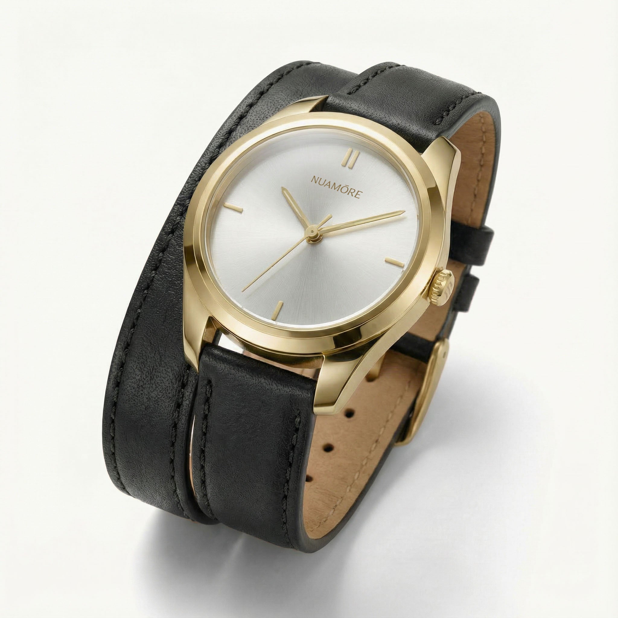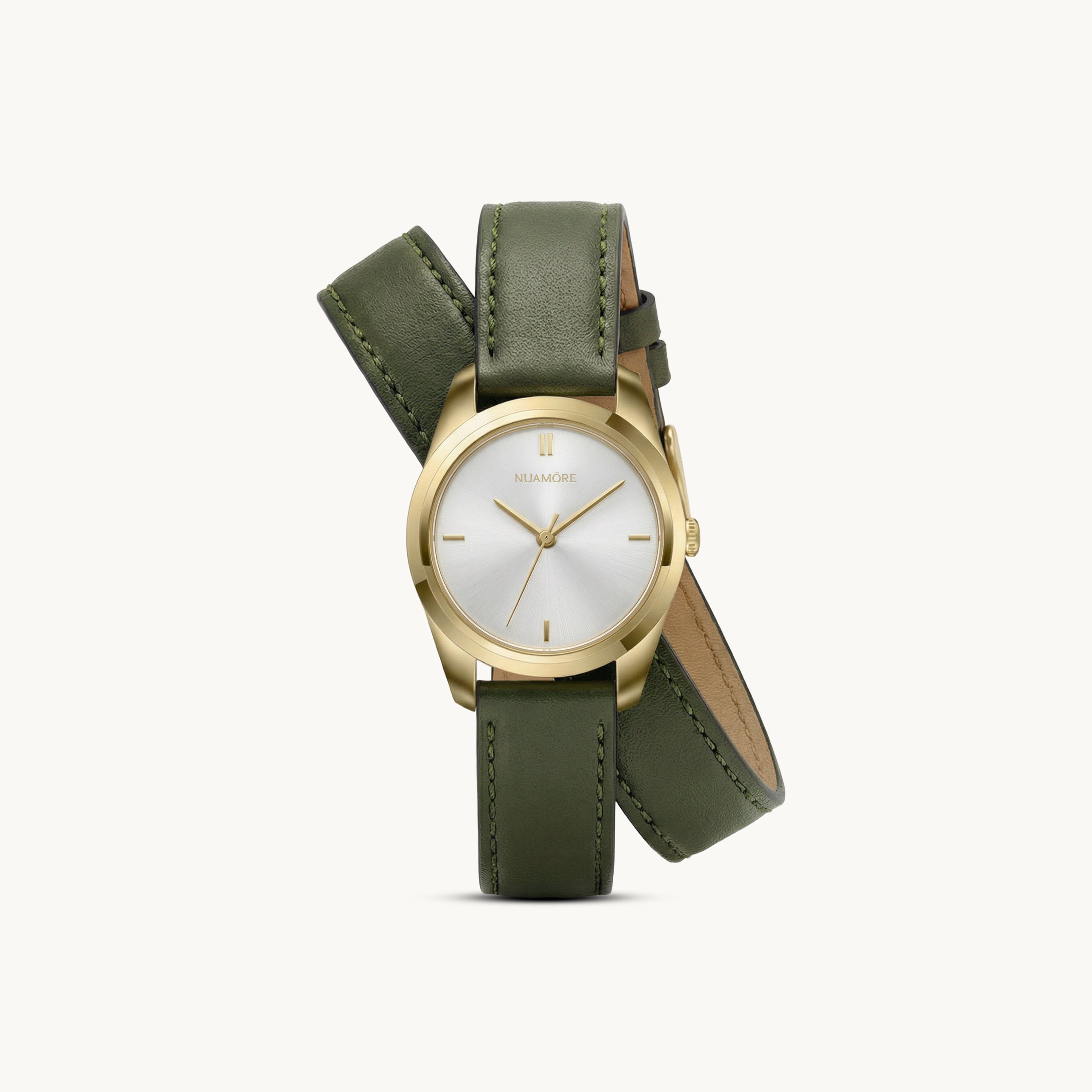 Designed for women who feel most alive in motion, the Nomade Watch is made to move with you, from early hikes to long walks, quiet escapes, and everyday adventures. Its layered leather strap feels soft and familiar from the first wear, while the earthy tones and clean dial keep the look grounded and effortless.