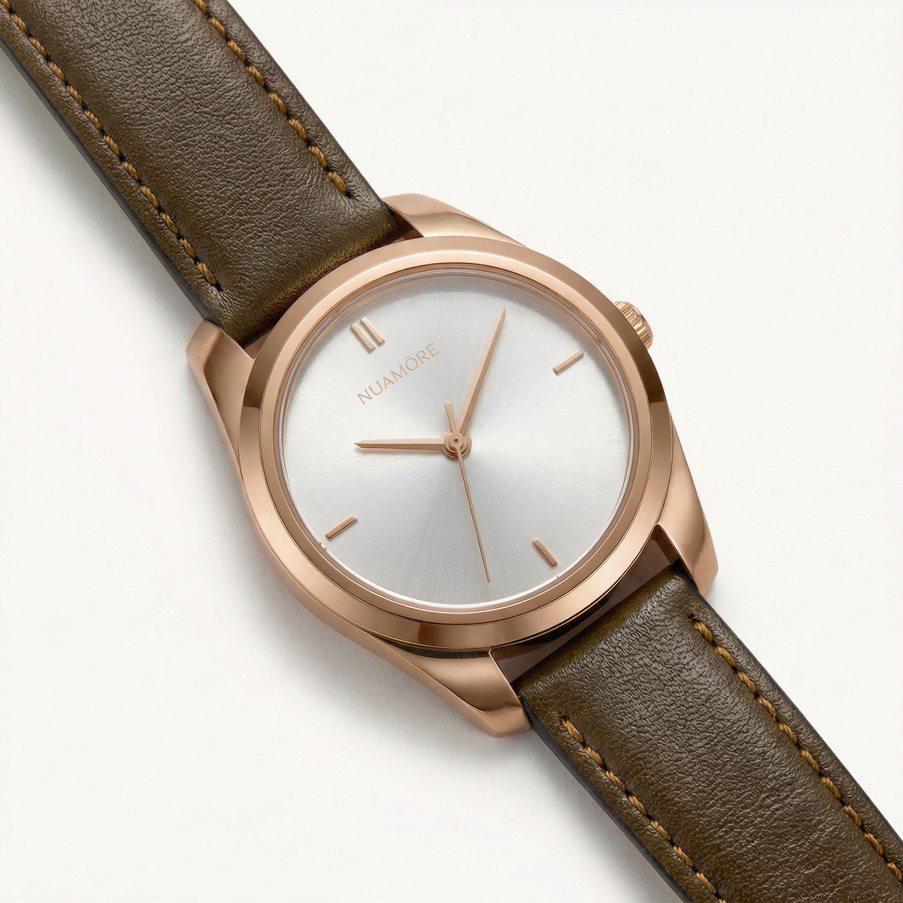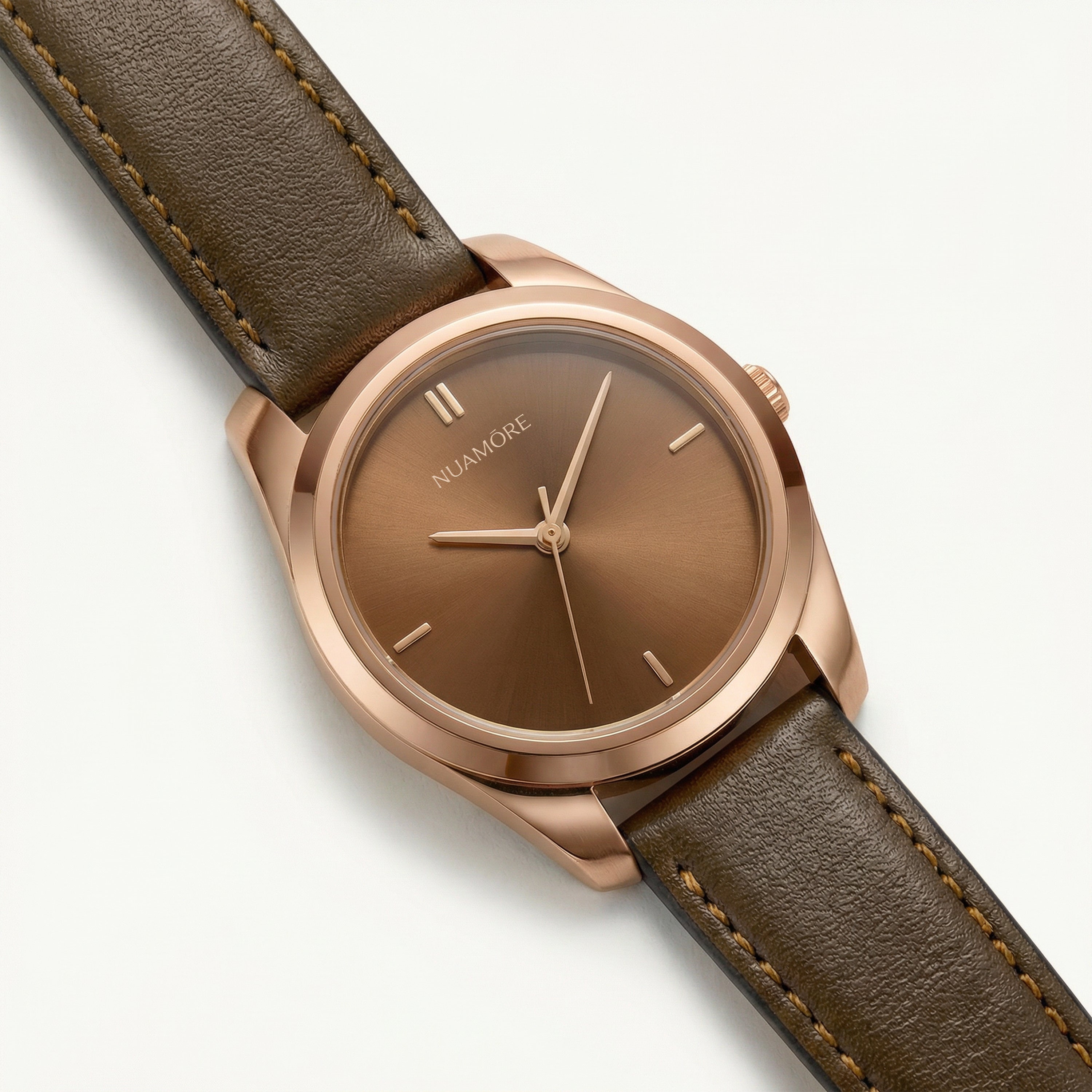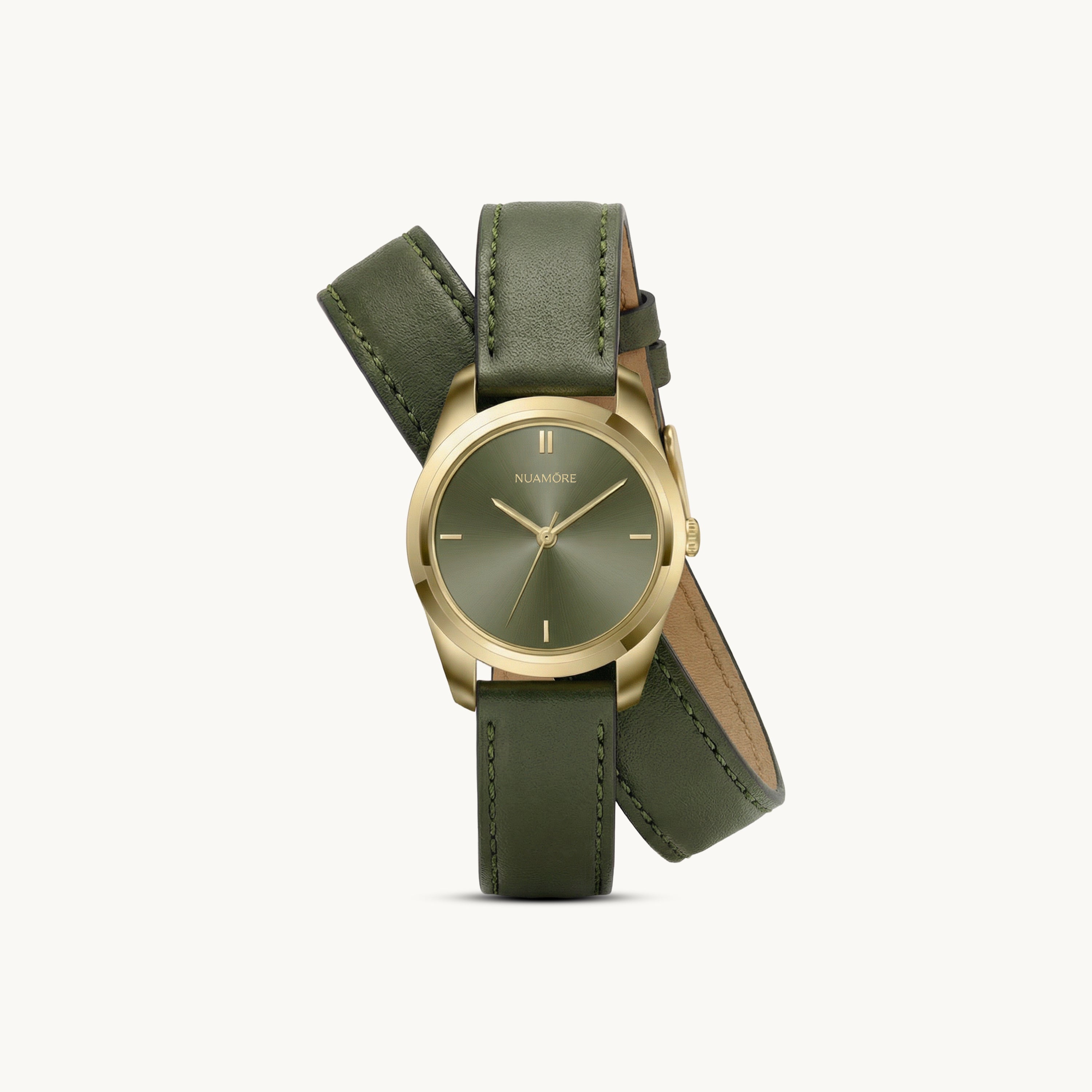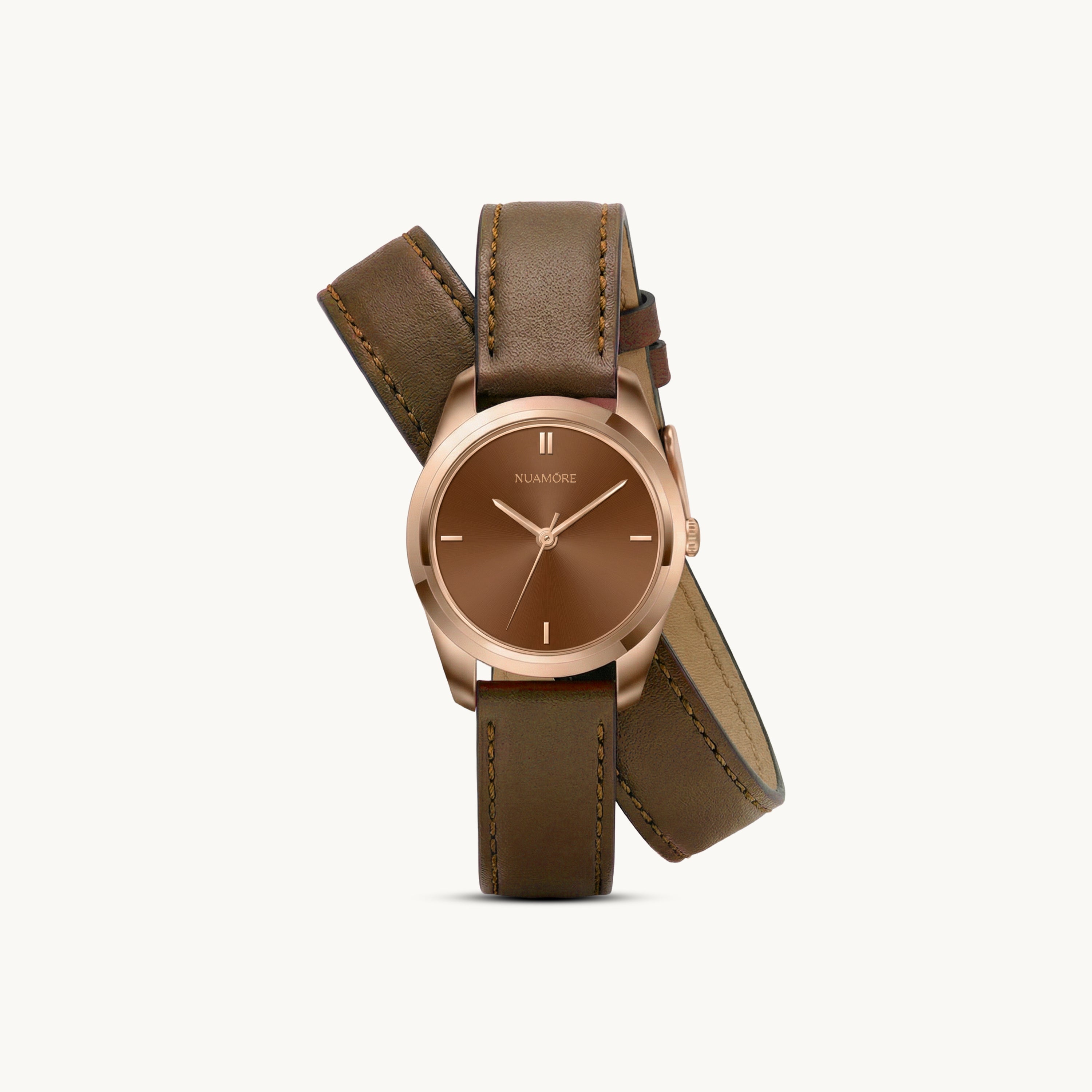 Designed for women who feel most alive in motion, the Nomade Watch is made to move with you, from early hikes to long walks, quiet escapes, and everyday adventures. Its layered leather strap feels soft and familiar from the first wear, while the earthy tones and clean dial keep the look grounded and effortless.