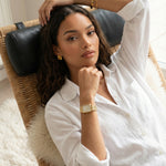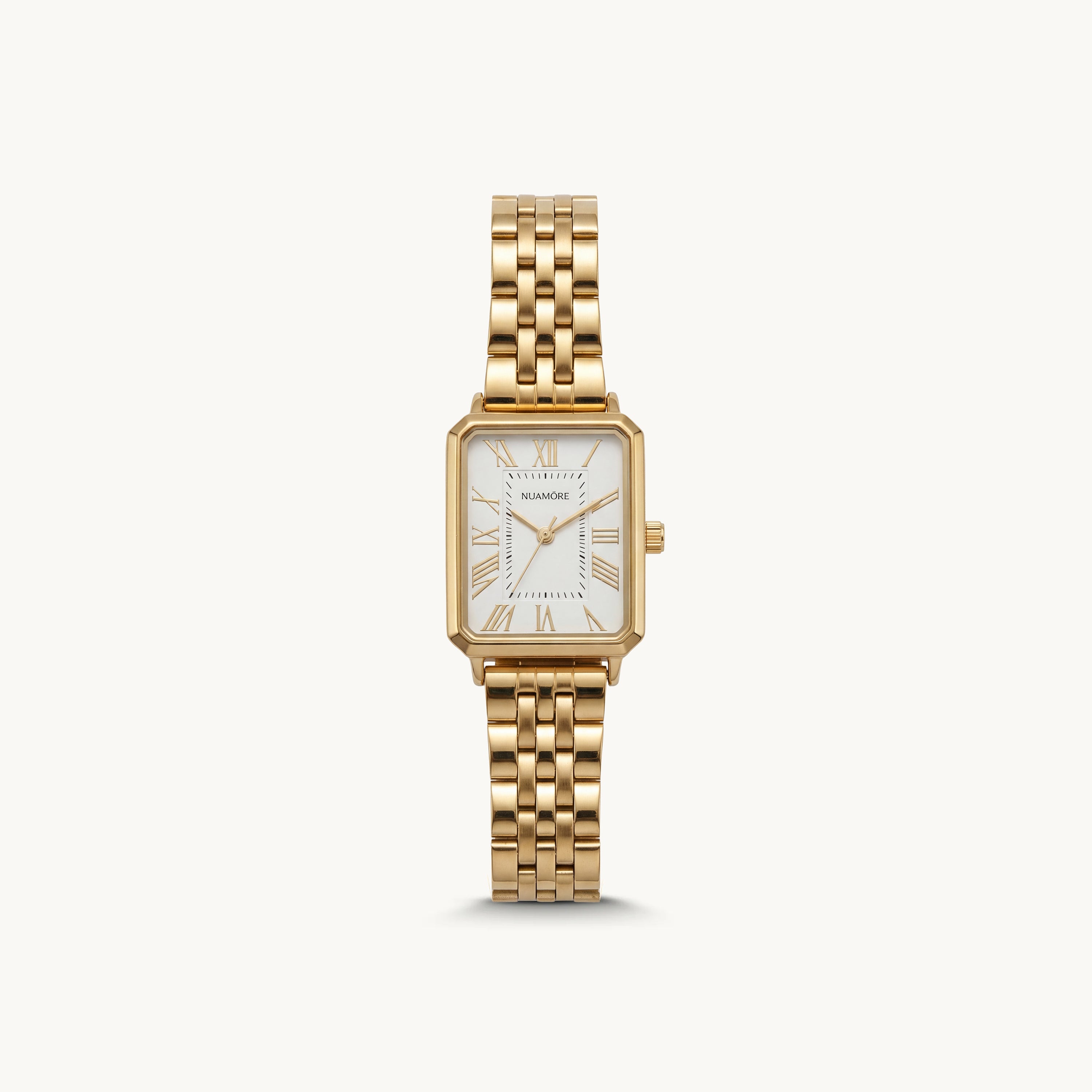The Alure Watch is a study in balance where clean geometry meets refined femininity. Its rectangular silhouette brings quiet strength to the wrist, while classic Roman numerals soften the look with timeless charm.