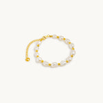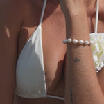 Ocean treasures, timeless elegance. Delicate pearls strung together on a classic chain, inspired by the natural beauty of the sea. Wear it solo for a touch of refined elegance or stack it to create your own signature style. This pearl bracelet will take you seaside, the elevated way.